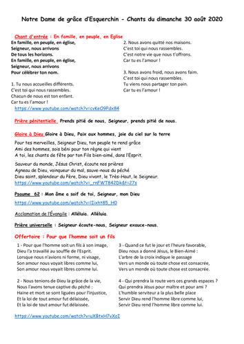Article publié par response.text()) .then(text => { html = text showLoading = false; })" class="flex justify-center animate-grow-on-hover--small">P. François • Publié le Vendredi 28 août 2020 - 16h07 • 778 visites Chants de l'ete Ste Therese Télécharger 294.3 Ko Télécharger Chants Esquerchin pour le 30 aout Télécharger 179.6 Ko Télécharger
